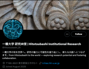 一橋大学 研究IR室では公式X(旧Twitter)アカウントを開設しました。