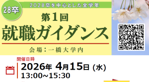 2026年2月18日開催 [文系博士] ロールモデル座談会 2026-02-09 / 最終更新日 : 2026-02-09 EVENT [文系博士] ロールモデル座談会 [対象]博士前・後期課程学生 [日程]2026年2月18日(水) 13:30~15:00 [形式]オンライン 詳細はmanabaコンテンツをご確認ください。