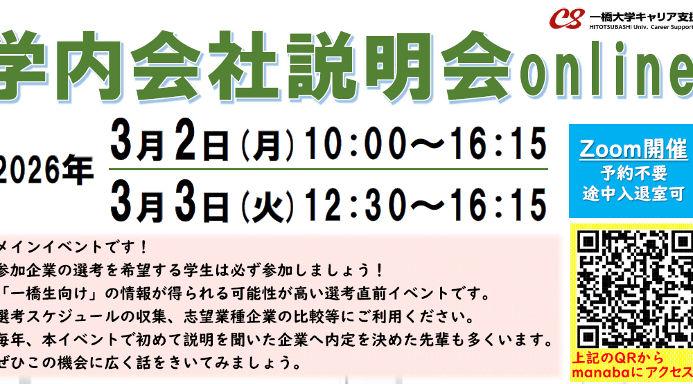 【1月・2月】一橋生のための 学内会社対面セミナー [対象] […]
